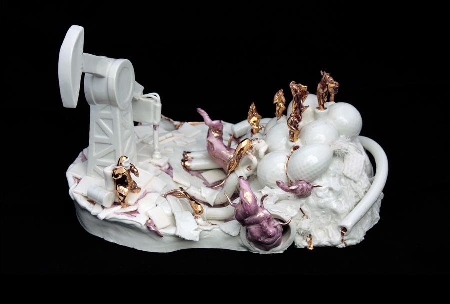 Annushka Broche refers to classic literary utopia, «What to do?» Nikolai Chernyszewski and Lenin’s manifesto, with the same name written in 1905, from which the artist moved to porcelain. Vera Pavlovna’s fantasies are recreated on four tables (by number of dreams), and the composition demonstrates the destruction of Utopia. The hero seeks to free herself from bourgeois traditions, to get an education, to become completely free of traditional relationships with her husband. And the last dream of the perfect world is falling apart, only fragments remain. Ceramic and video make it possible to create a massive image of the collapse of Utopia.