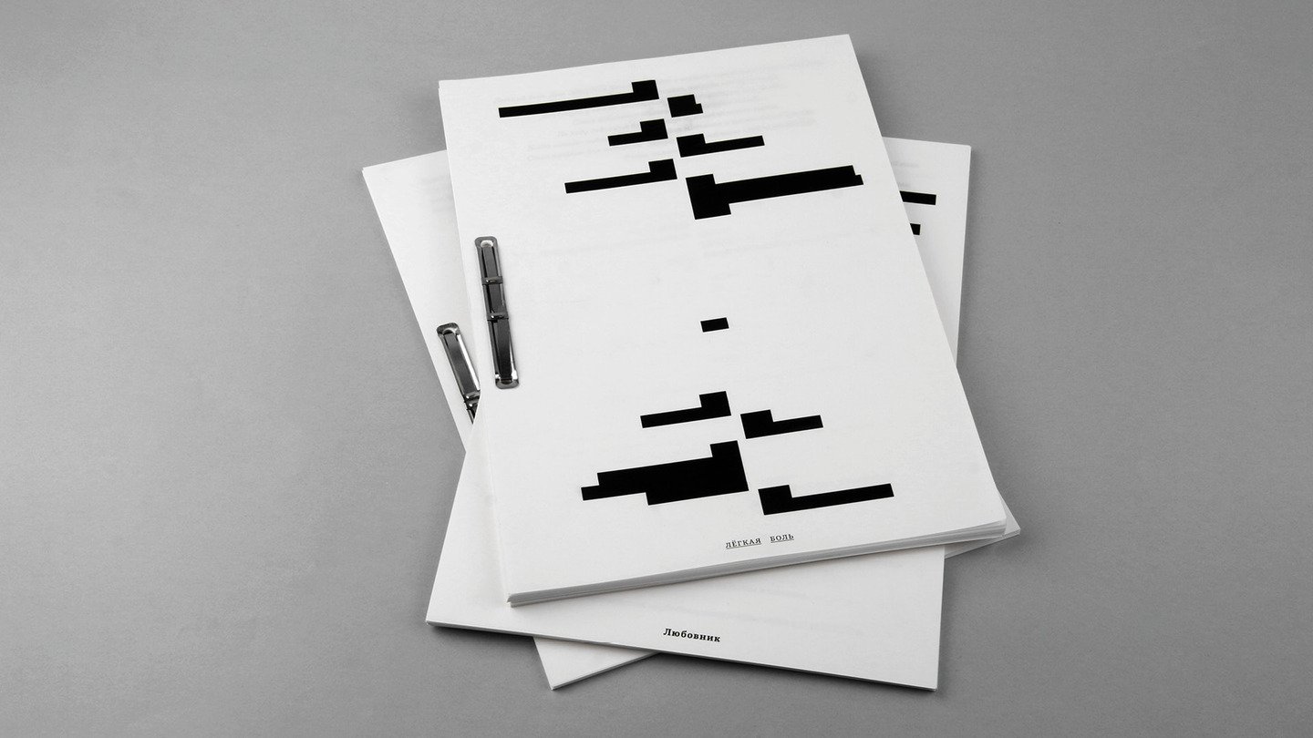Лёгкая боль. Действующие лица вынесены зеркально друг другу и подчеркнуты, выключка по левому и правому краю соответственно.