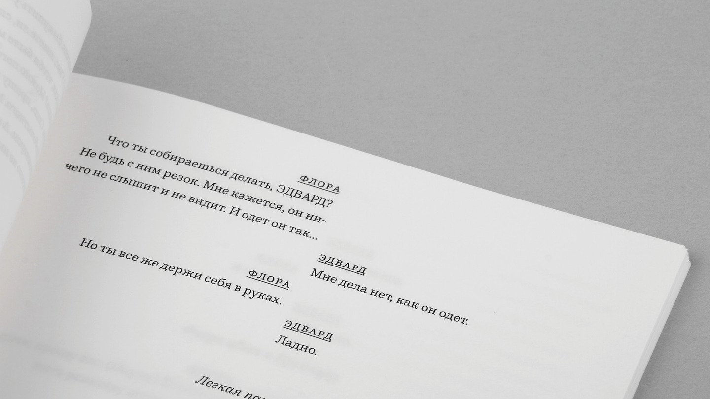 Пейзаж. Действующие лица внутри основного текста с большой разрядкой, выключка текста по ширине.