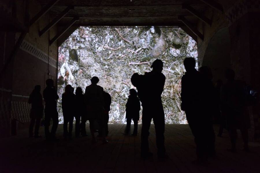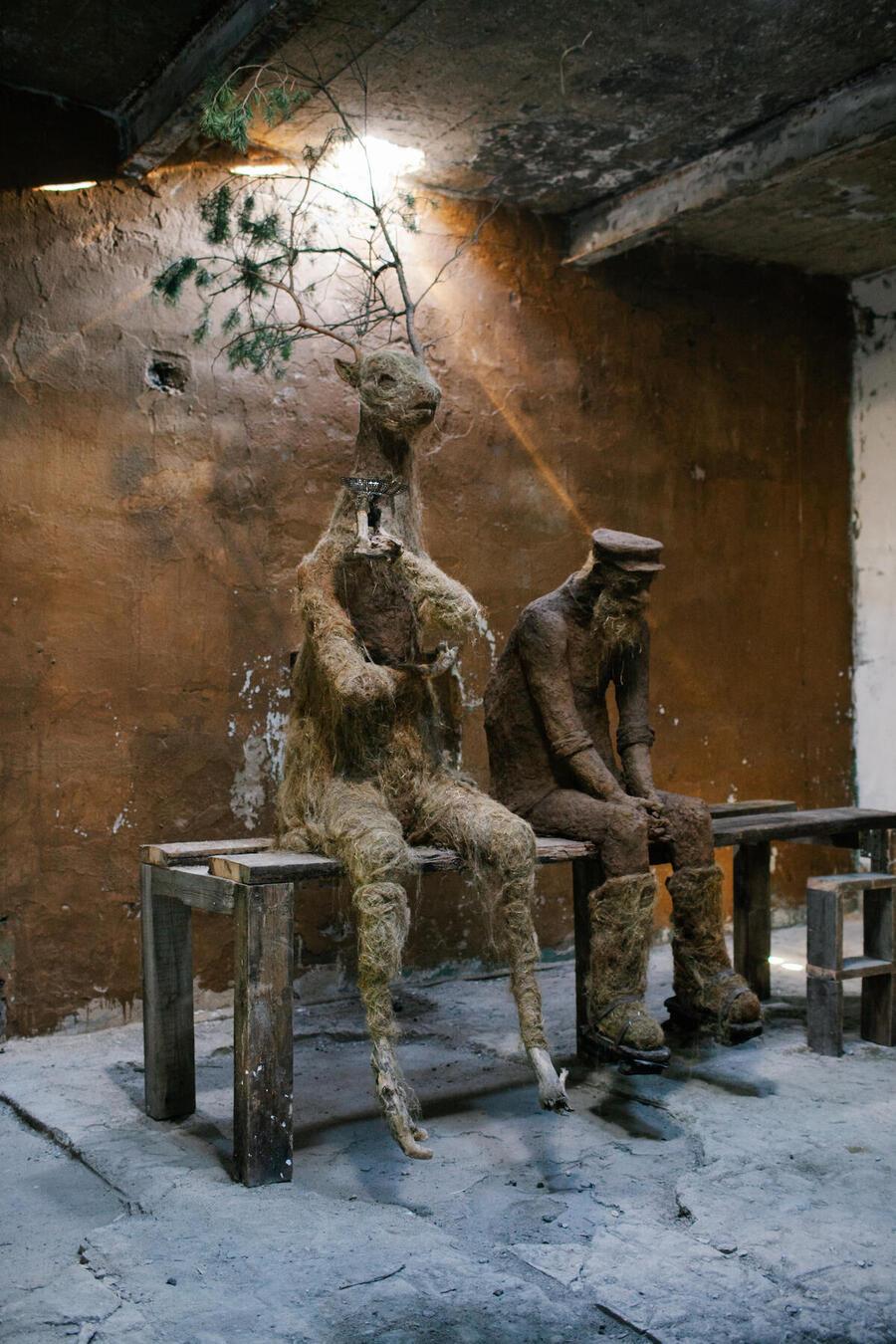 Несколько арт-объектов представили авторы художественного объединения «ГУЙ». Обитатели пространства, будь то рабочие 18 века, чей образ переосмысляется в инсталляции «Курилка» или местные дети — исследователи завода (работа «Отметьте нас!»), становятся персонажами его истории.