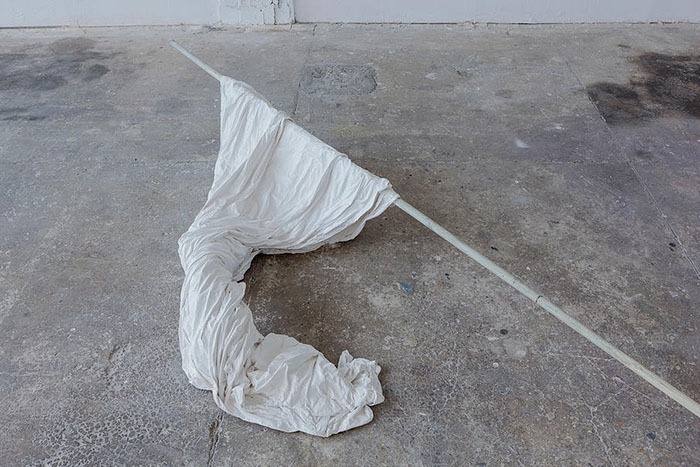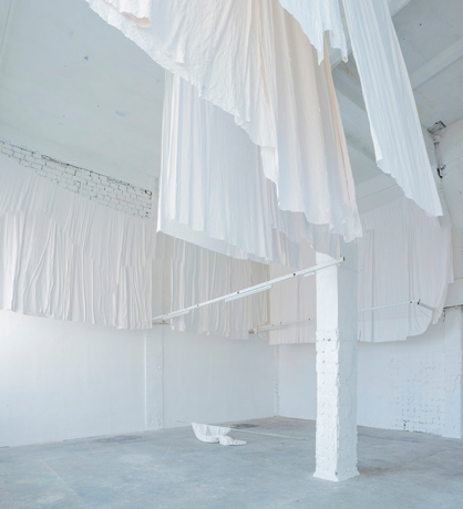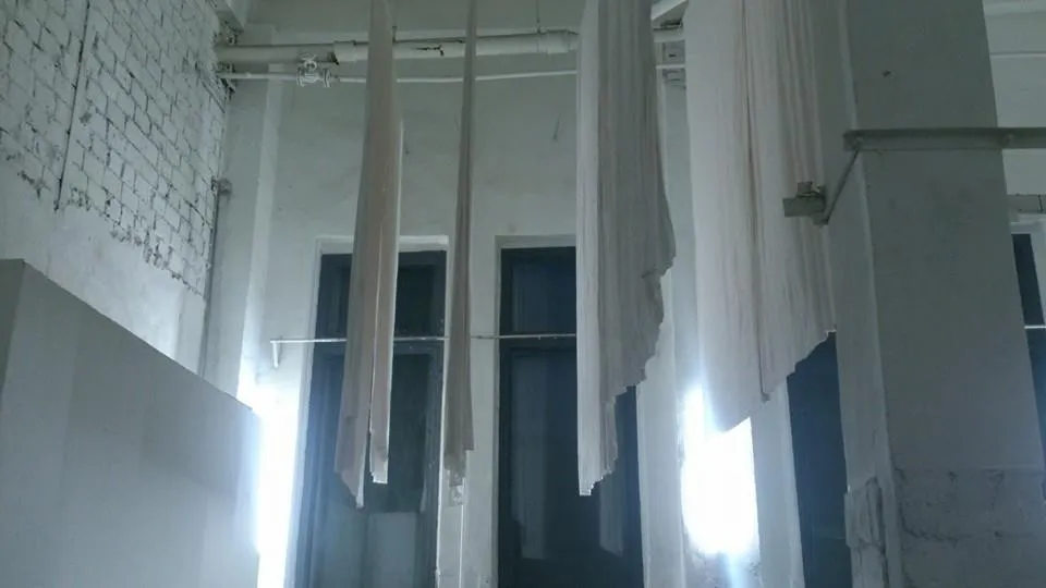 «Белая выставка» — проект Виктории Малковой и Полины Москвиной, прошедший в 2015-м году на Электрозаводе, своеобразно продолжает тему, обозначенную работой Наташи Тимофеевой «Без названия», в которой художница дополняла место при помощи строительных сеток. В своей выставке авторы осмысляют архитектуру площадки, заигрывают с физическими свойствами пространства. На стенах и тросах под потолком повисают неотличимые по цвету от стен белые полотна, и тогда простыни (воздушные и лёгкие по своему существу) становятся тяжёлыми и неповоротливыми, как сам Электрозаводской бетон.