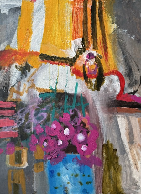СВЕТ СКВОЗЬ ЗАНАВЕСКУ холст/акрил 60×80 см // ГИАЦИНТЫ холст/акрил 72×70 см