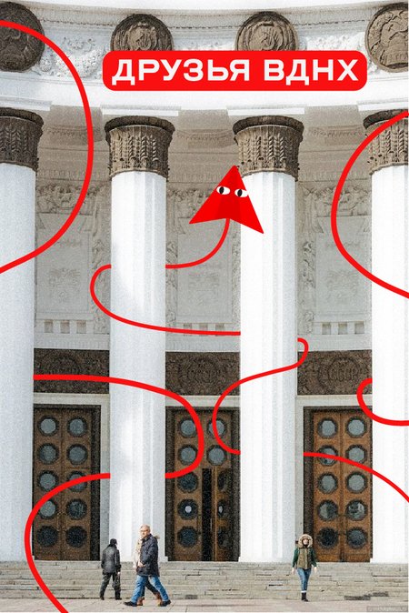 Неподвижная Стрелочка на весь экран. Вдруг моргает и начинает двигаться. За ней остаётся след. Въезжает в главные ворота ВДНХ и начинает маневрировать среди людей. Каждая реплика людей, не озвучена, но написана. Кто-то фоткается на фоне фонтана и говорит: В-а-а-ау. Это «Вау» растягивается на весь экран, а потом змейкой заполняет его и рассеивается. Кто-то едет на велосипеде и кричит: Ю-ху! «Ю-ху» начинают появляться в разных местах и исчезать. Одно «Ю-ху» чуть не задевает стрелочку, но она ловко уворачивается. Кто-то ест в кафешке и говорит: как вкусно. «Как вкусно» — на весь экран написанные три дэ буквы и стрелочка проезжая мимо них откусывает от фразы кусочек. Стрелочка заезжает в музей и там кто-то говорит: смотри! «Смотри» становится «чёрной дырой» (или туннелем) по которой проезжает стрелочка и попадает в дом страхов, там кто-то кричит: страшно! «Страшно!» резко появляется и пугает стрелочку, она скорее уезжает, преследуемая «Страшно!». Стрелочка едет куда-то дальше, экран заливается фоном и на нём разными шрифтами написано: получи невероятные эмоции вместе со стрелочкой и программой лояльности ВДНХ!