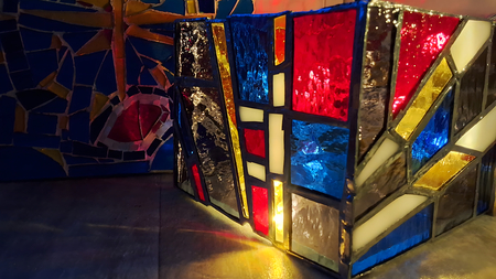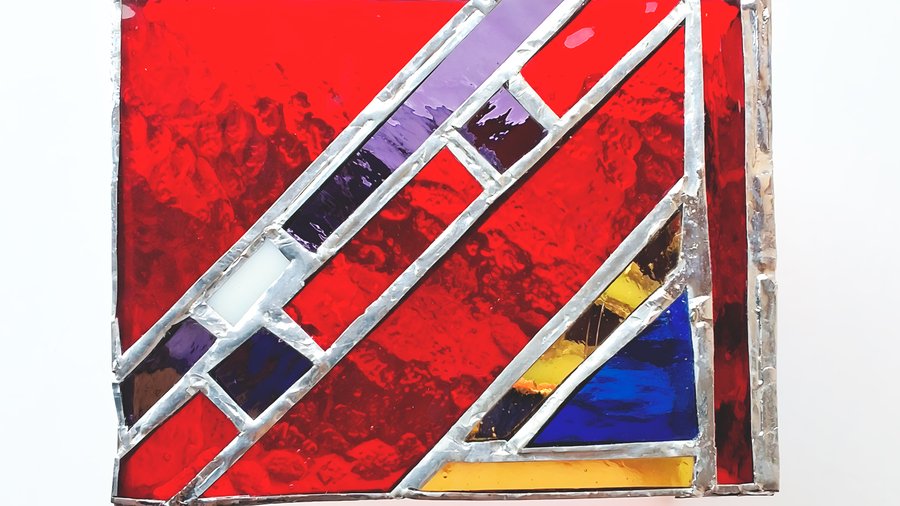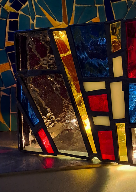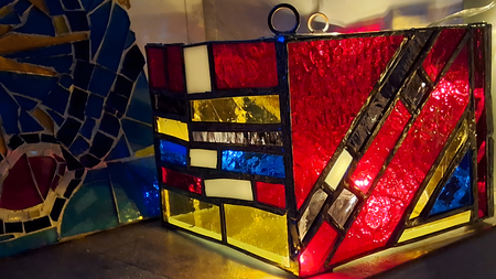 «Лучи» — Витражный фонарик состоящий из разных по форме геометрических объектов, которые вдохновлены картинами в стиле лучизма.