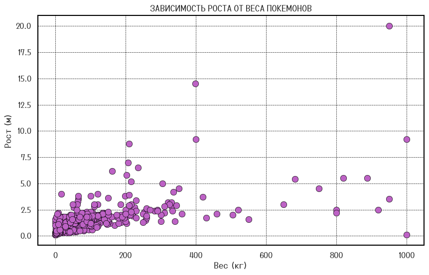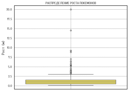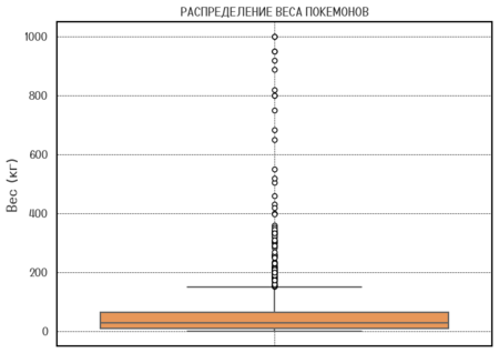 Анализ роста и веса выявил, что хотя средние значения близки, существуют выбросы с очень крупными покемонами, а также наблюдается слабая положительная корреляция между ростом и весом.
