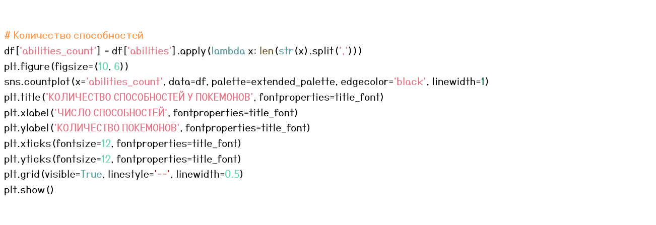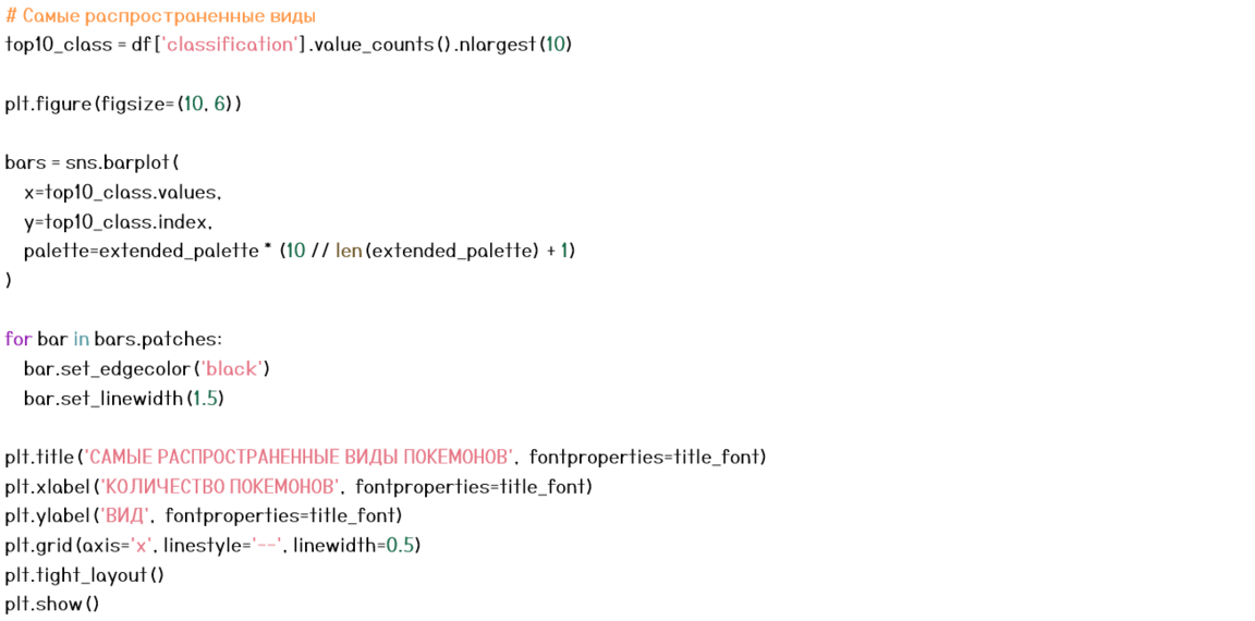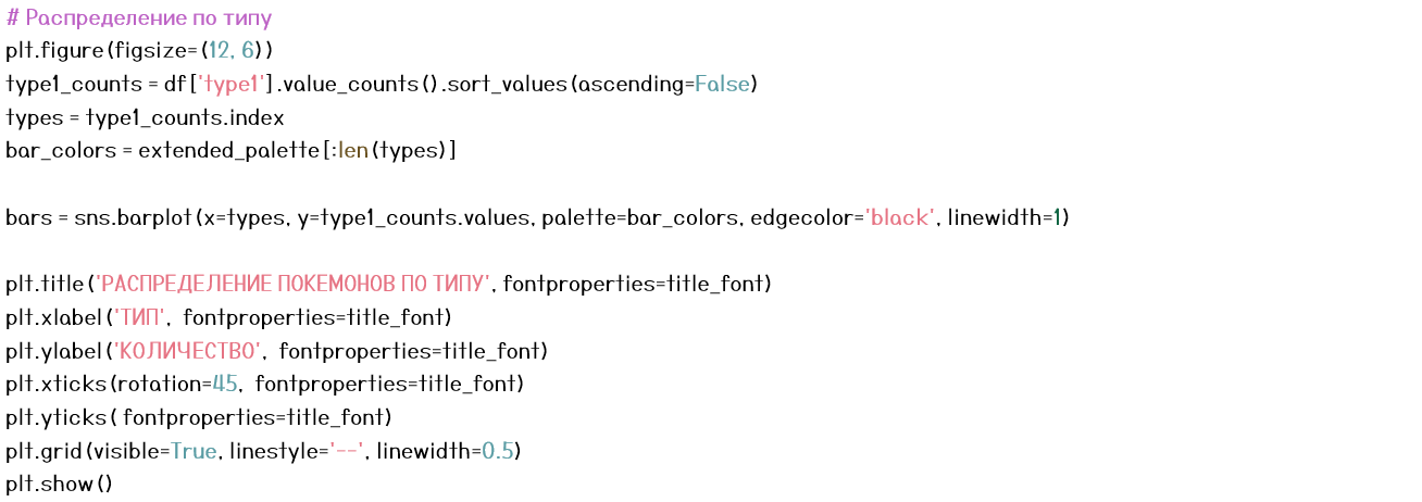 Для оформления графиков я выбрала шрифт LXGW Marker Gothic, потому что он хорошо сочетается с визуальной атмосферой покемонов — слегка рукописный и динамичный стиль добавляет живости диаграммам.
