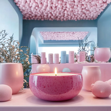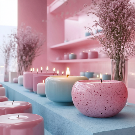 create candle shop in pink and blue style with nature and modern elements --iw 1.5