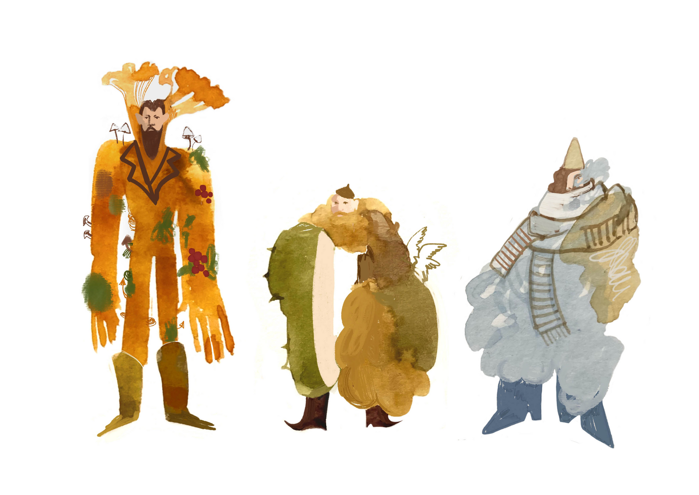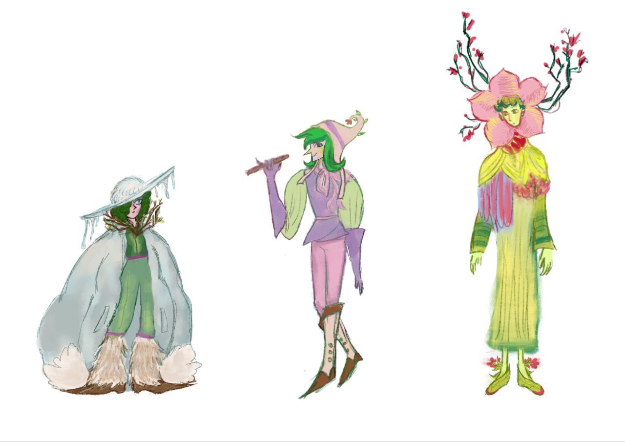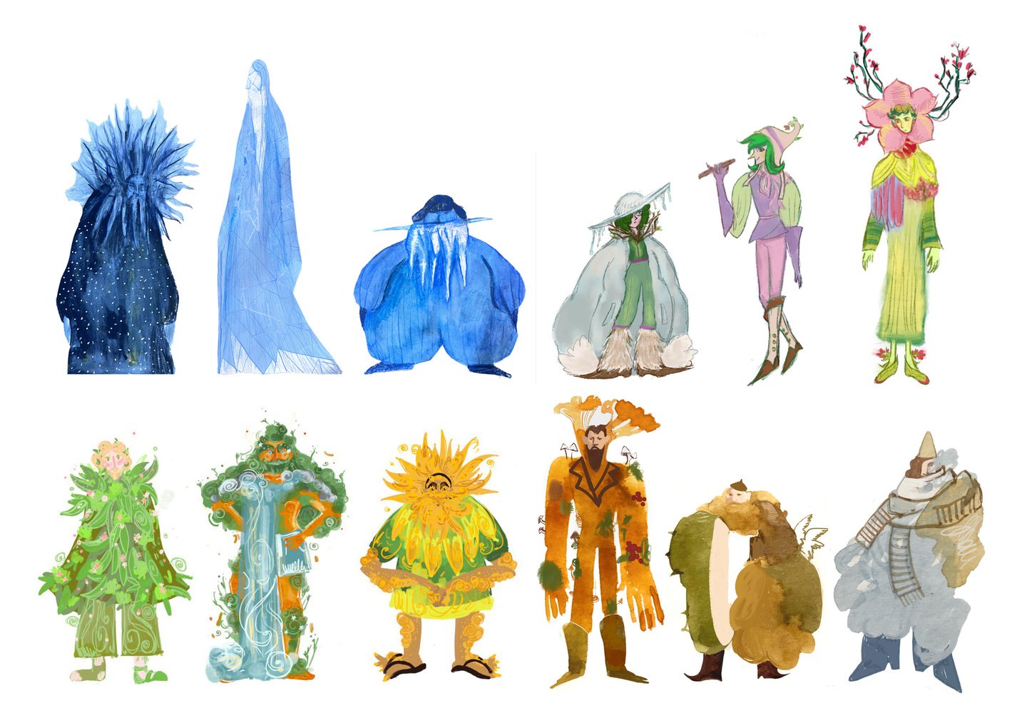 зима — Лея пастернак, весна — Лин Бостынец, лето — Арина Вербицкая, осень — Тоня Русиновская