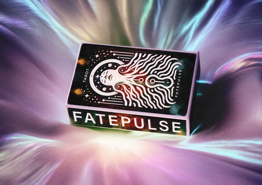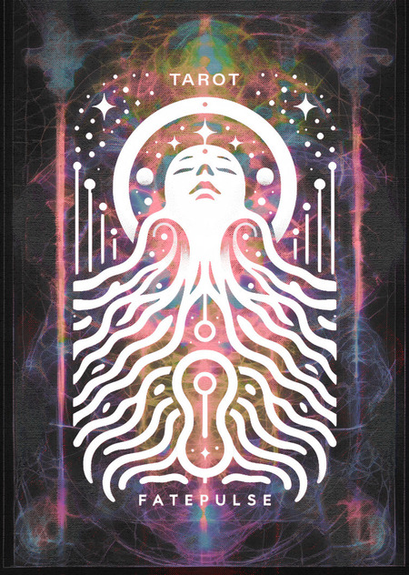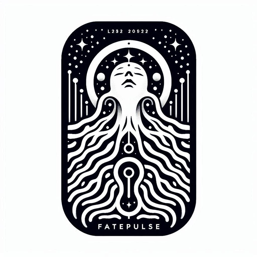 Помпт: Unusual low detailed minimalistic vector logo for FatePulse, a brand that creates Tarot cards, on a white background. Style: simple chromatic xray, flooko, 2002, purity, soft bioluminescent membranes, aeron alfrey, in 2 0 0 2, lossless, david rudnick, noxious.