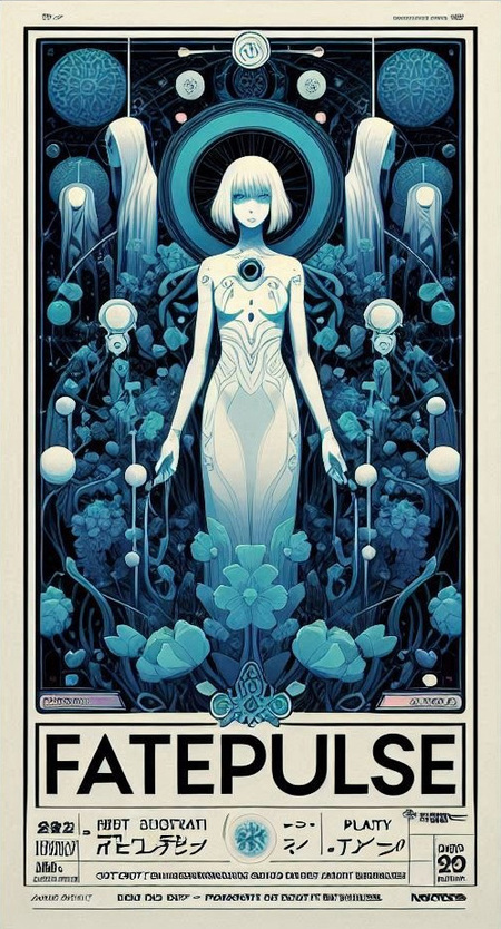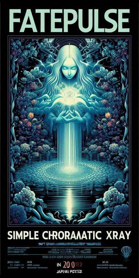 Промпт: Promotional posters for FatePulse. Style: simple chromatic xray, flooko, 2002, purity, soft bioluminescent membranes, aeron alfrey, in 2 0 0 2, lossless, david rudnick, noxious.