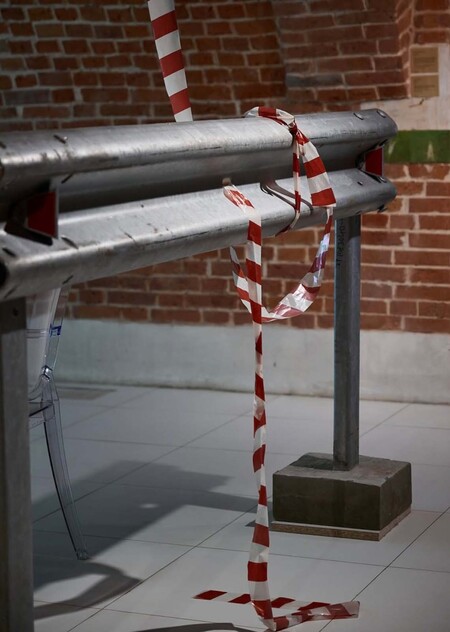 Движение по трассе сопровождает множество раз повторяющиеся дорожные барьеры. Взгляд прыгает по их перпендикулярным прямым, ритм меняется вместе со скоростью движения. Ощущение этого движения хочется запечатлеть в одном кадре. Но один застывший момент не может передать внутренние ощущения пути.