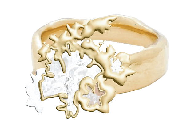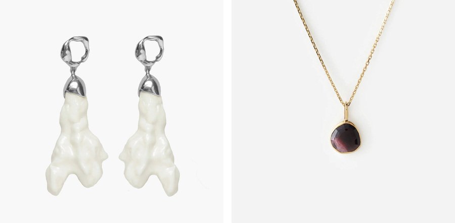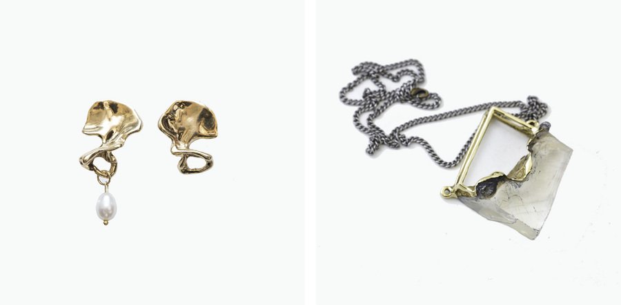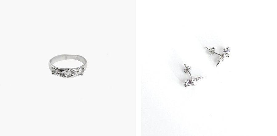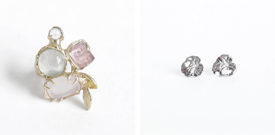 — Ювелирные украшения: подвеска и кольцо от «Mineral Weather», вдохновленные природными формами и цветами из букета от «Бизу».