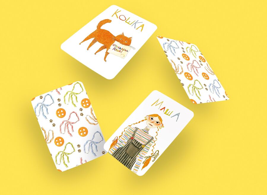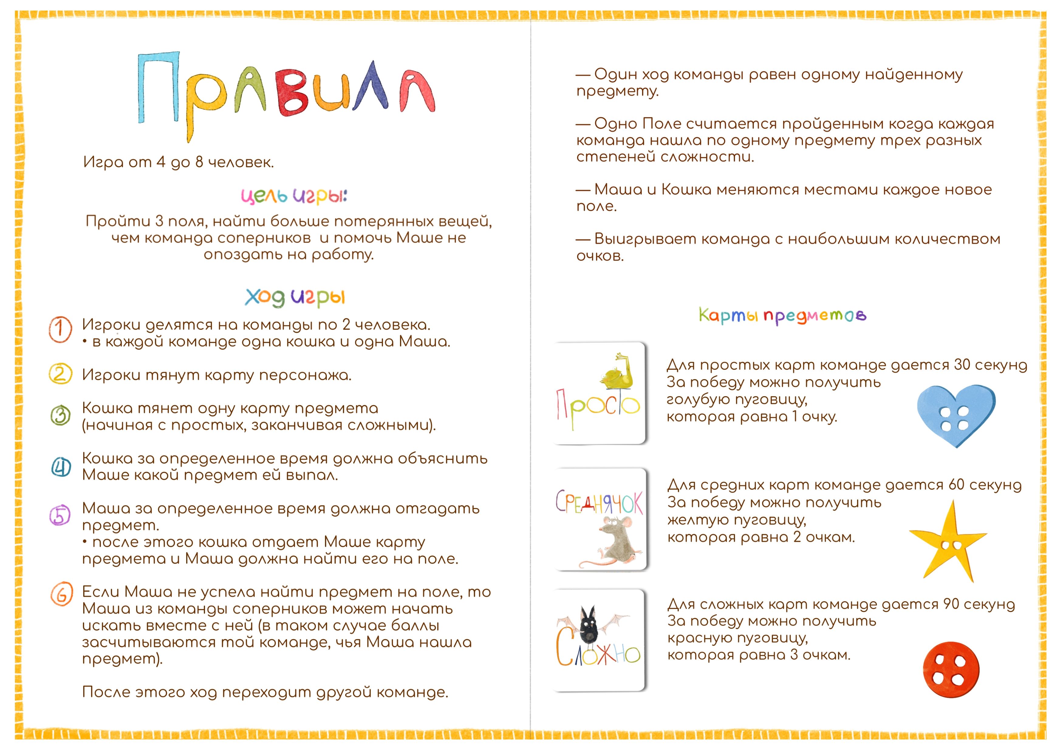 Кошка тащит карту предмета и за определенное время пытается объяснить Маше, что ей выпало