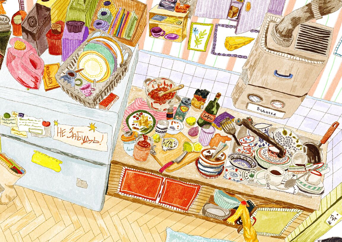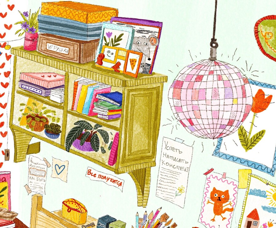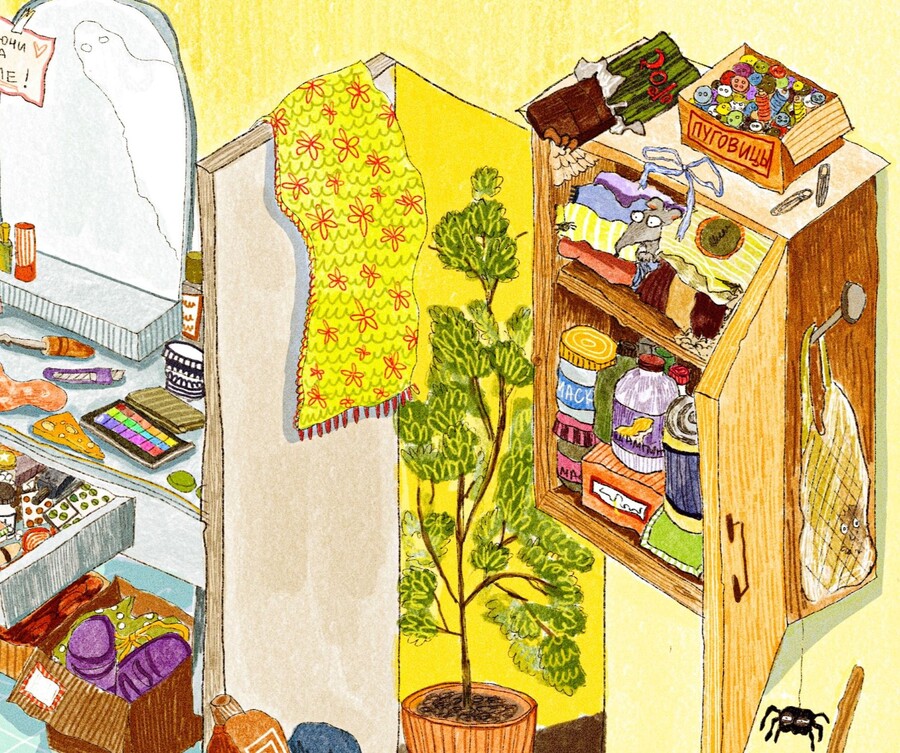 Маша выросла и теперь она, вместе со своей кошкой, которая помогает ей не потерять все вокруг, живет в коммуналке, ходит на работу и ведет обычную жизнь