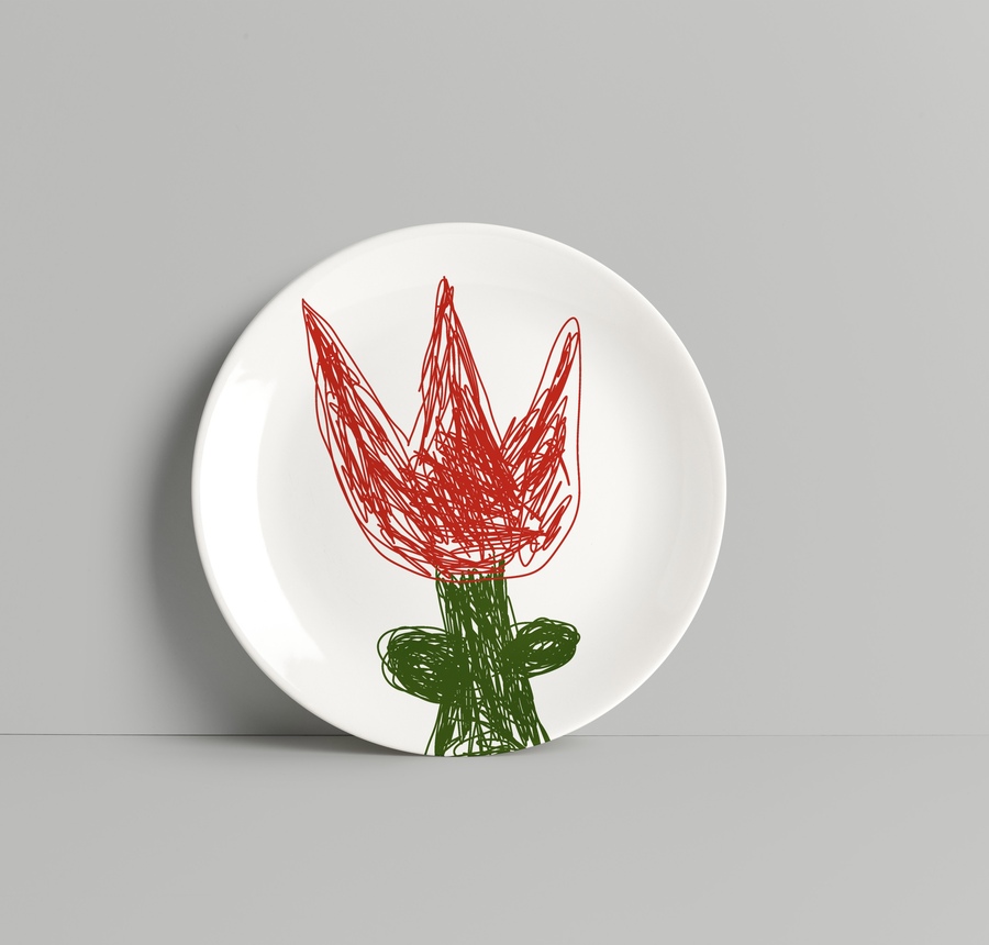 Темой иллюстрации фарфоровой коллекции стал негласный праздник мамы — 8 марта. Цветы — один из самых популярных предметов в иллюстрациях малышей.