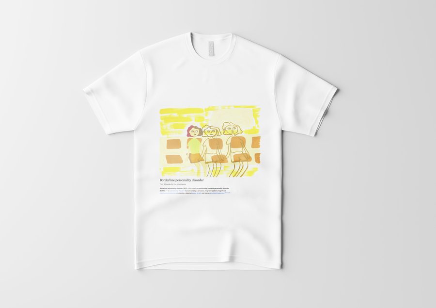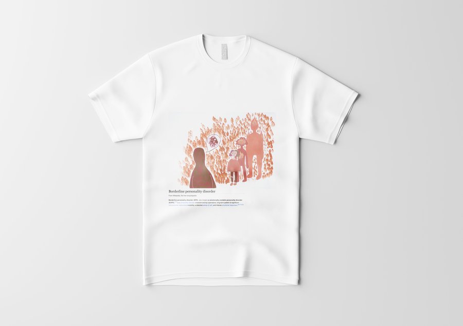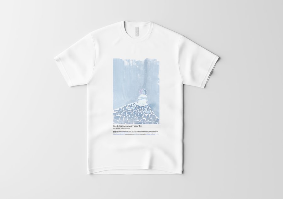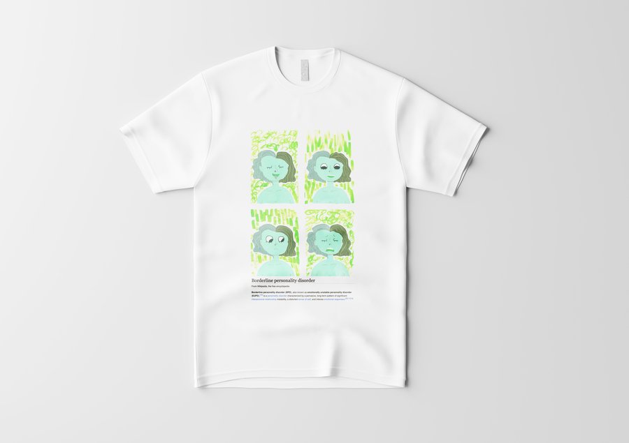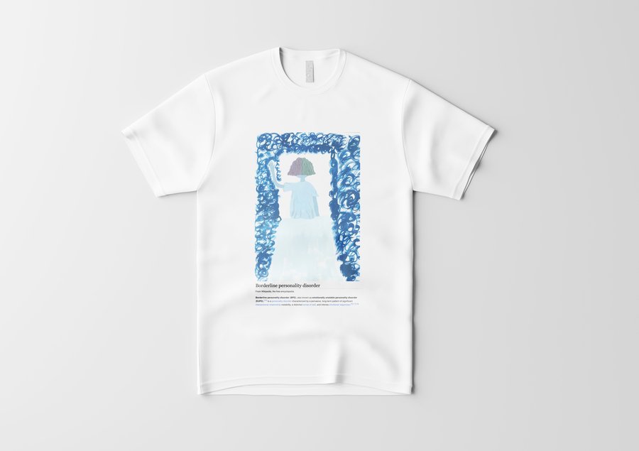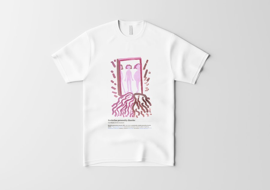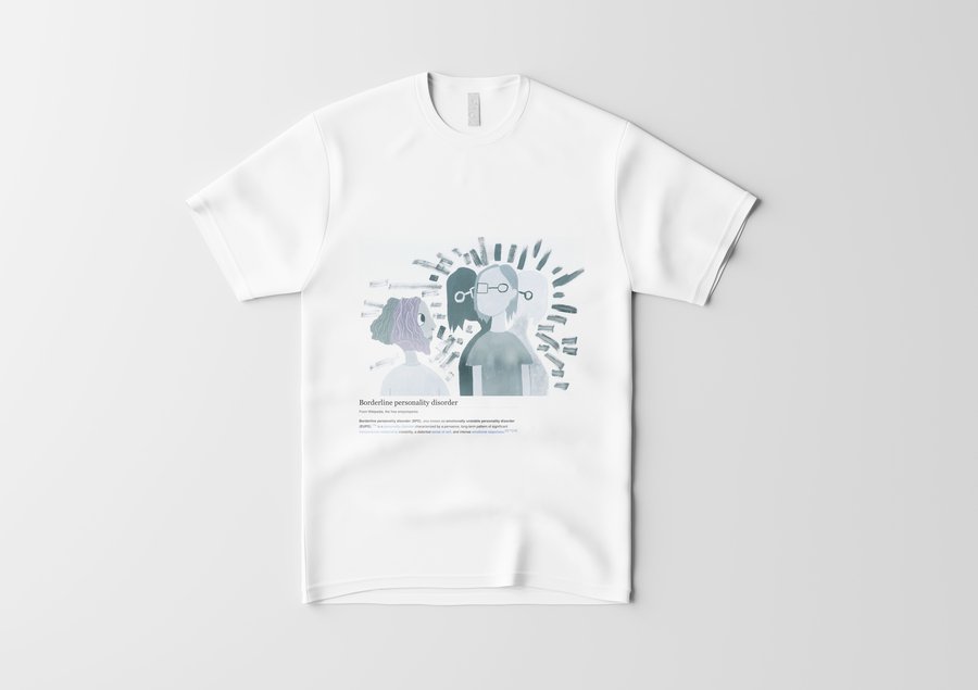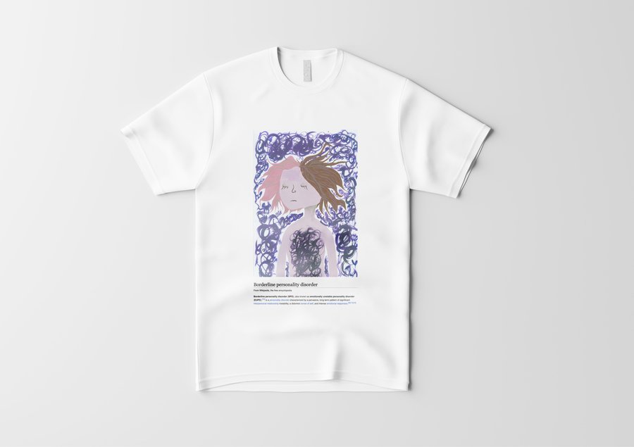 Пограничное расстройство личности диагностируется по 9 признакам: чувство брошенности, нестабильные/интенсивные отношения, нестабильная самооценка, импульсивность, самоповреждение, быстрое изменение настроения, чувство пустоты, гнев, диссоциация. Я собрала их все. Все 9 работ распечатаны на футболах, чтобы каждый смог почувствовать себя в моей шкуре. Мой проект нацелен на репрезентацию ментальных расстройств в обществе. Это помогает снять стигму, сформировать нейтральное отношение к болезням души также как болезням тела.