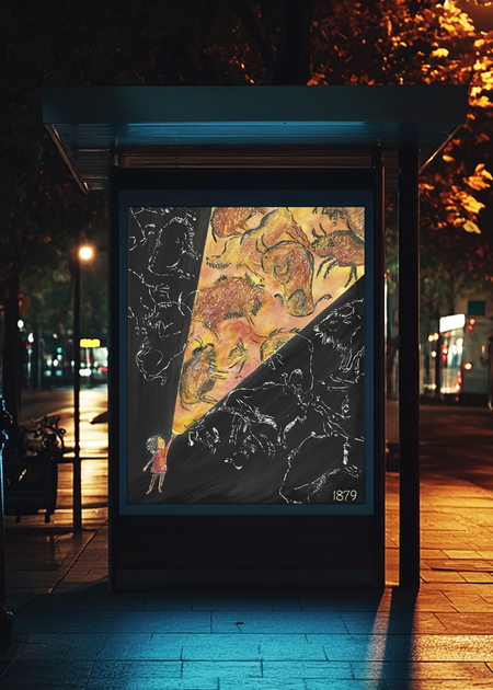Эта серия плакатов посвящена теме моего кураторского проекта, который рассказывает об открытии пещеры Альтамира археологом Марселино де Саутуолой и его маленькой дочкой Марией.
