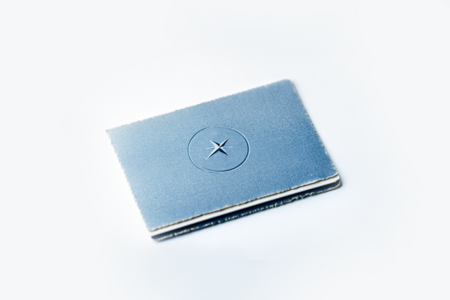 /imagine simple textured logo for jewelry brand. There are four-edged stars and round. Use cold mute blue and white color. --ar 3:2.