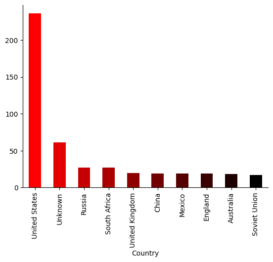 На данной гистограмме видно, что большее количество серийных убийц было в США. Но так же невозможно упустить из виду то, что Россия в этом списке находится на третьем месте, конечно же с большим отрывом, но всё же.