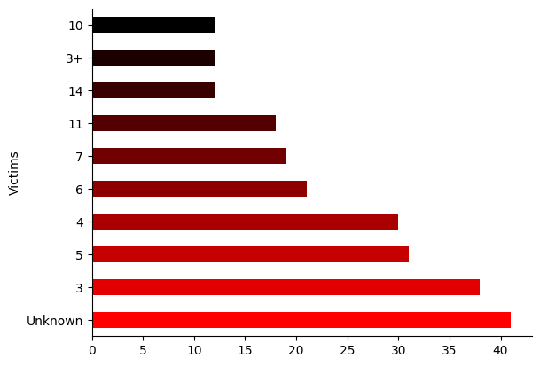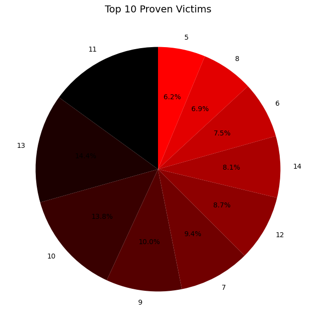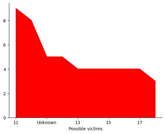 В этой круговой диаграмме мы видим число подтверждённых жертв и процент убийц, которые отняли указанное количество жизней.