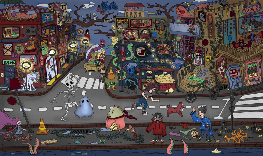 Промпты: - several detailed illustrated postcards in Japanese vector style. They depict a large number of different monsters, plots, and objects. The illustrations on the postcards are made in muted natural green, red, blue and yellow colors. The character is childish and naive - A detailed illustrated board game box in Japanese vector style. It depicts a large number of different monsters, plots, and objects. The illustration is made in muted natural green, red, blue and yellow colors. The character of a child is naive.