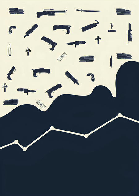 Я сгенерировала обложку с помощью Ideogramm (https://ideogram.ai/g/PWTDUuXiQF6fE876earH6Q/2) и промпта: «A striking minimalist cover design for a project on crime analysis. The layout features a stark contrast of colors, with a warm peach background (#f0eee2) and dark navy graphics (#26364d). A simplified line graph with dramatic spikes and valleys represents the fluctuations in crime rates. Symbols of various weapons like guns, knives, and ropes, as well as stacks of money, are scattered throughout the design. The overall composition is clean, modern, and visually impactful, effectively conveying the complexity of the subject matter without the use of text, illustration. "