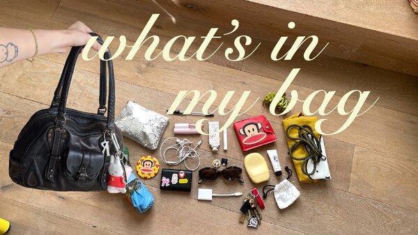 Слева фрагмент видео с Charli XCX «Inside Charli XCX’s Mugler Shoulder Bag | In The Bag» автор British Vogue Справа обложка видео «what’s in my everyday bag» автор Susielola