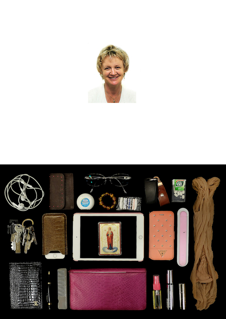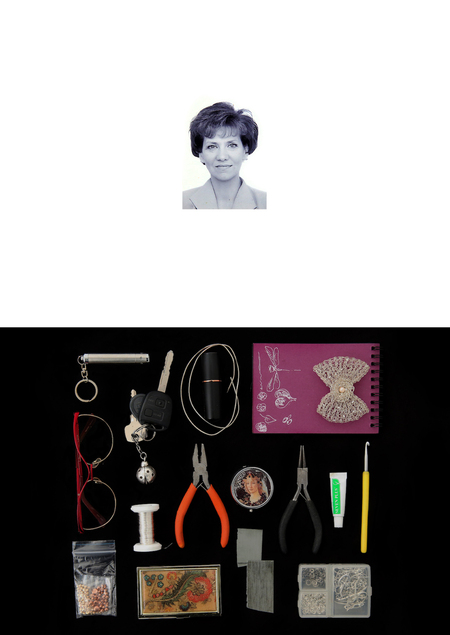 Кроме профессиональных орудий, часто в сумках у женщин можно найти такие приятные мелочи, как конфеты, открытки от детей, помады, резинки и зажигалки. Все внутренности сумок с одной стороны, как бы различают и делят девушек (банально по профессиям), а с другой объединят в мелочах и именно различности безделушек у каждой. Словно смотря на фотографии, мы заглядываем во внутренний мир женщины: и вот уже можно представить, как Катя штопает штаны, Елена общается на брифинге с коллегами, а Маша работает с огранкой камней.