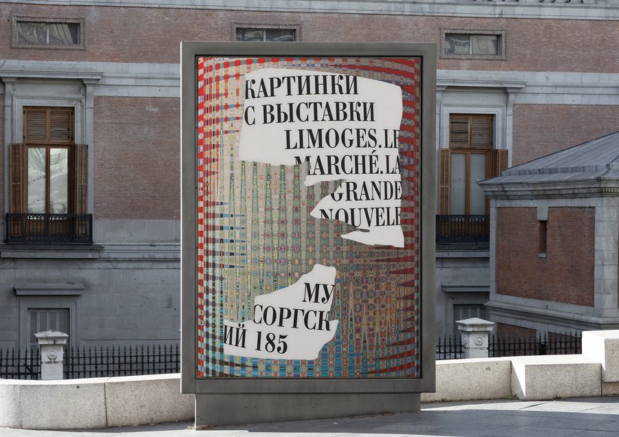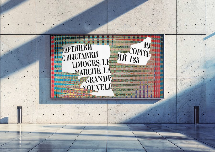 We were inspired by the noisy and smug market atmosphere that M. Musorgsky is creating in his composition. As a result, the main image on the poster is the advertising booth, which creates a visual noise that overlaps with the market and with the fast music of Musorg.