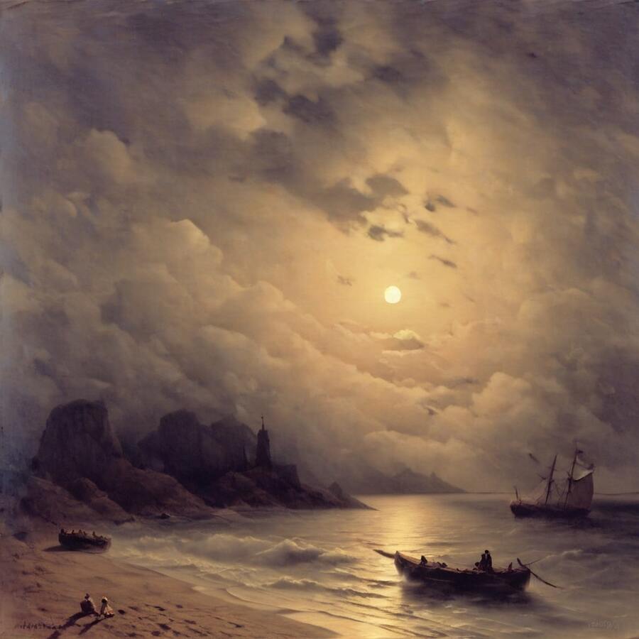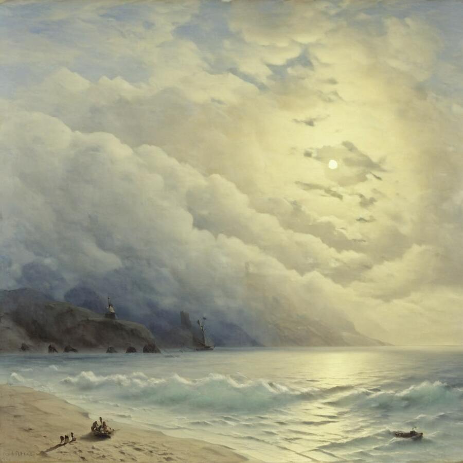 Seas of AI-vazovsky — это проект, посвящённый попытке воссоздания стиля и духа картин мариниста Ивана Айвазовского с помощью нейросетевой модели Stable Diffusion. Представленная модель была обучена на десяти реальных картинах Айвазовского, после чего исходя из различных промптов генерировала изображения в его стиле.