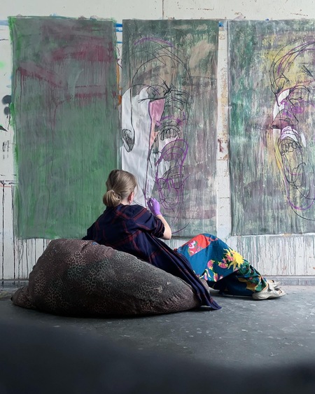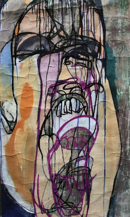 Акрил, уголь, масляная пастель, маркеры, бумага.
