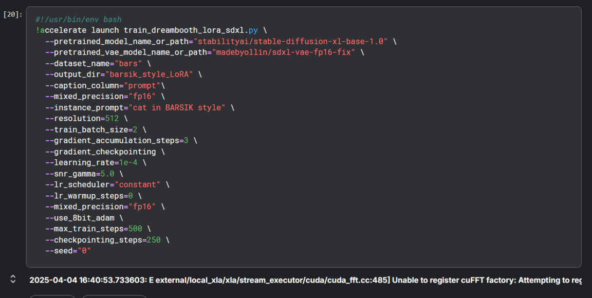 Затем модель обучается с инструментом LoRa.