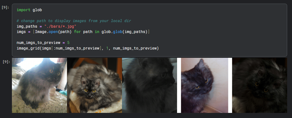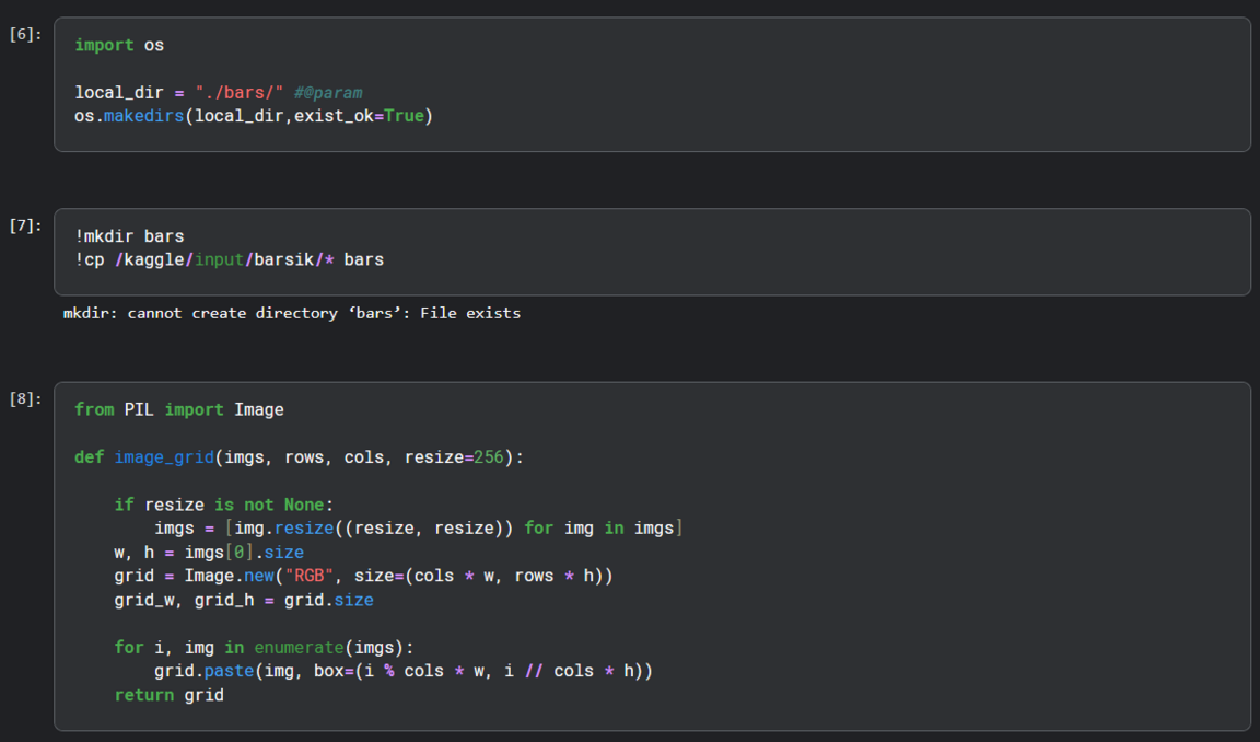 Для обучения нейросети я взяла 50 фотографий Барсика, загрузила их в разрешении 512×512 как датасет, а также подключила его к блокноту.