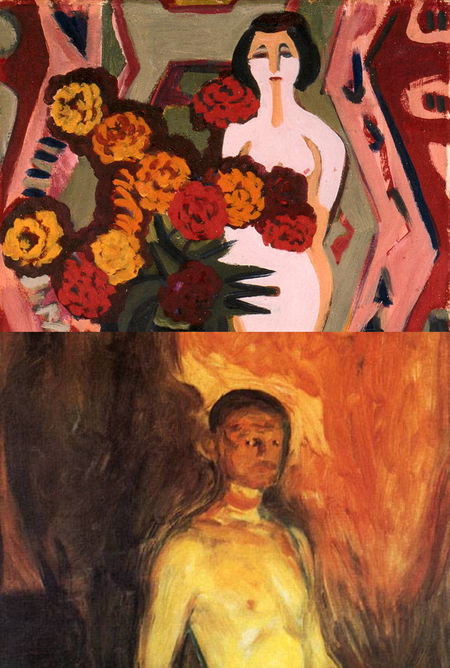 Еще одним ярким примером экспрессивного выражения чувств и эмоций, чаще — тревожных, являются работы художника Эрнста Людвига Киршнера.