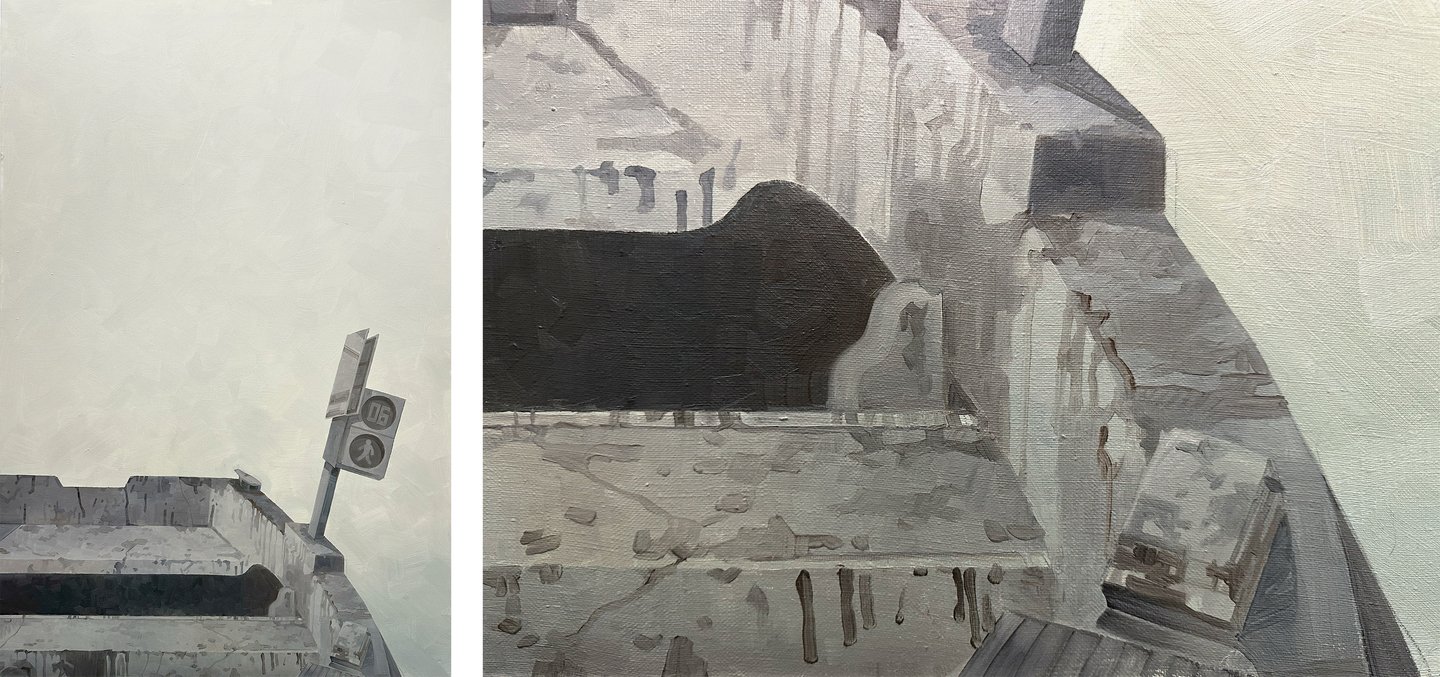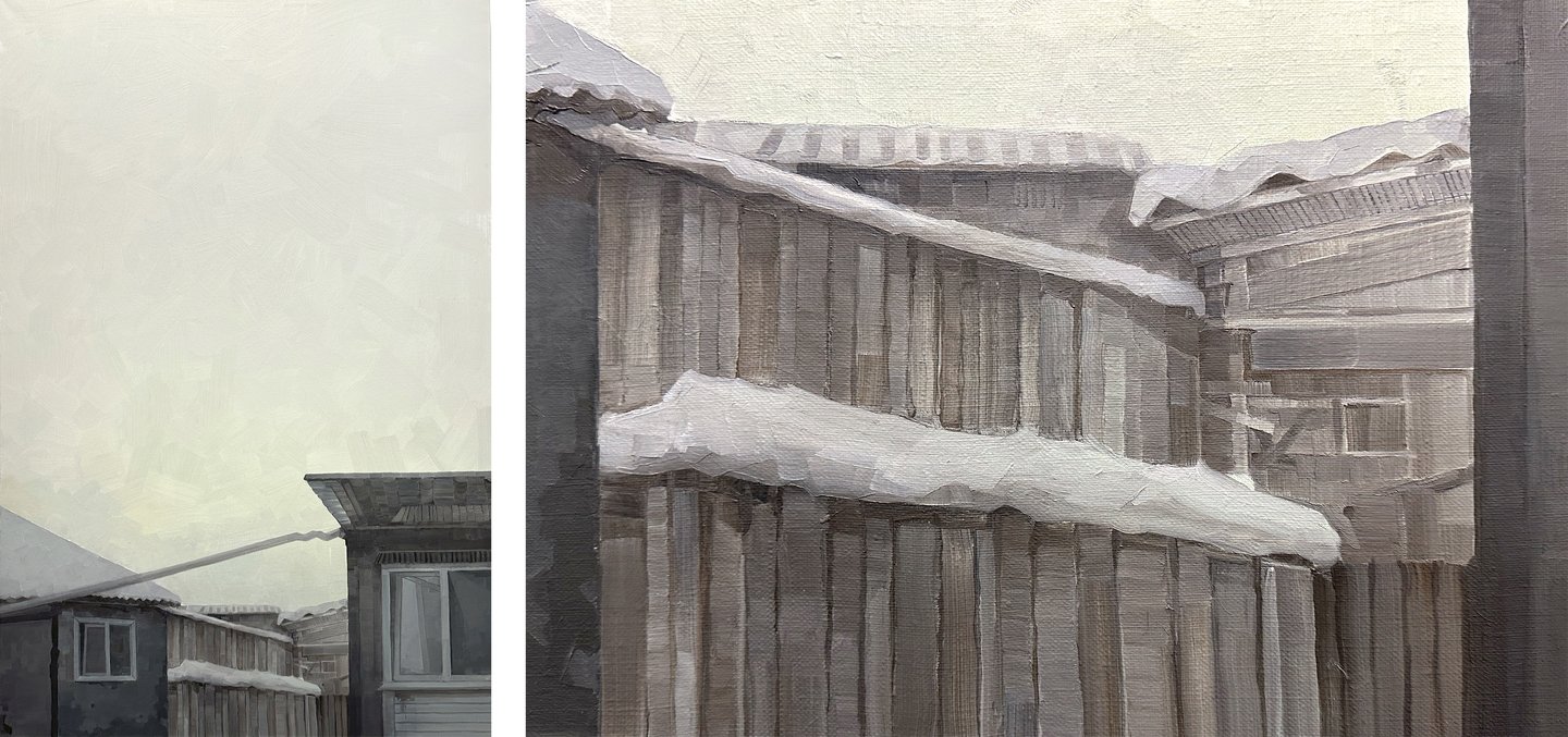 Выборка объектов не случайна, она отсылает к моему детству. Так получилось, что я на протяжении 6 лет проводила все каникулы в деревне. В этой местности не было привычной городской инфраструктуры. Возвращаясь обратно, Москва вызывала диссонанс и первое время каждой клеточкой отсылала к сельской местности. Это было едва уловимо в проблесках деревянных балок, в покатых крышах, в буйных растениях. Когда пейзажи приедались, меня снова увозили в деревню и я мысленно проделывала тот же трюк. Песок напоминал крошку асфальта, стволы деревьев превращались в фонари, а колодец уменьшался до урны.