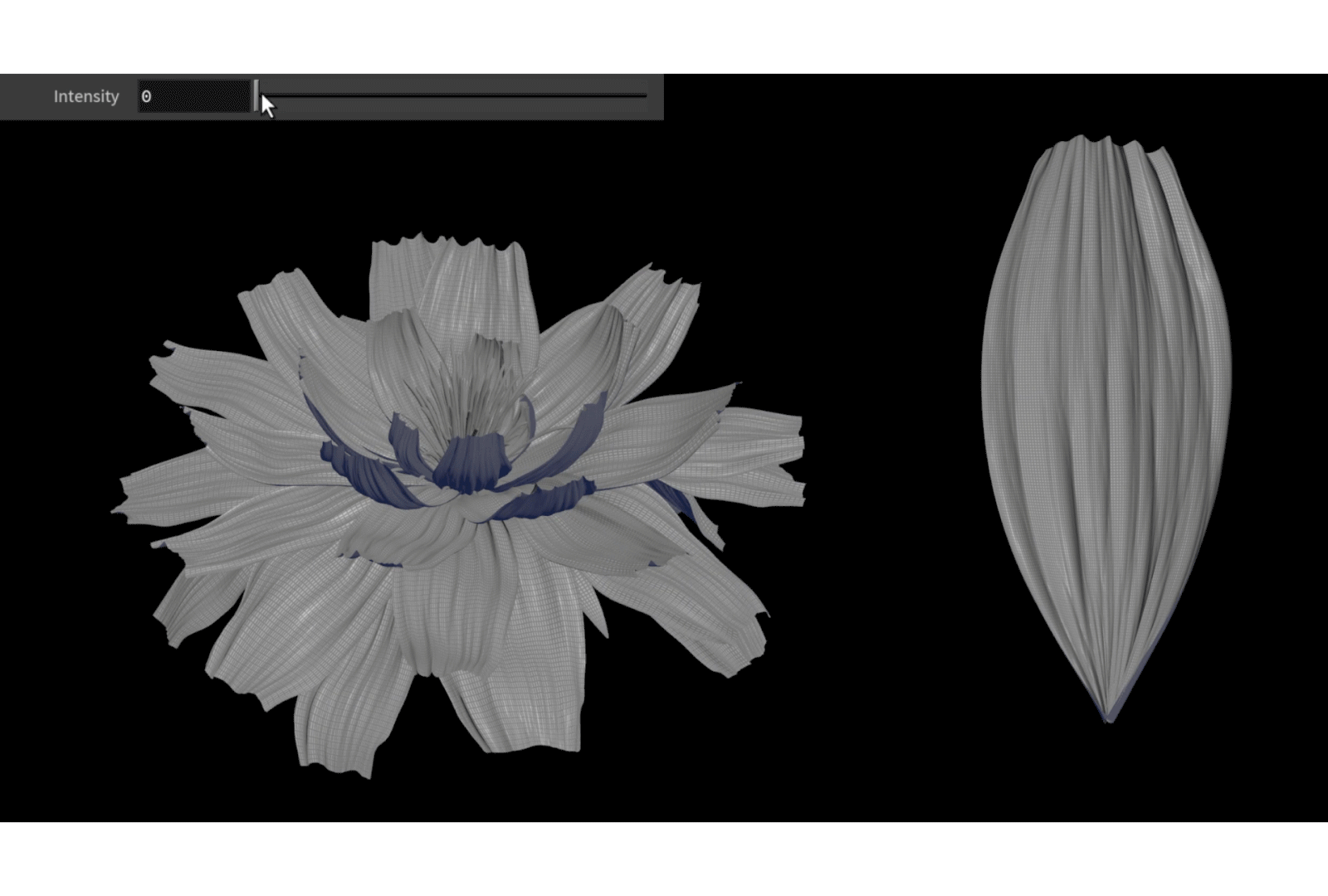 Когда работа над детализацией закончена, соберем готовые модели в небольшую композицию, поместив их на несколько стеблей, созданных в ноде curve. Для того чтобы изолировать точки для копирования (вершины стеблей), необходимо создать условие: удалены должны быть все точки, кроме последних (по номеру) на каждой кривой.
