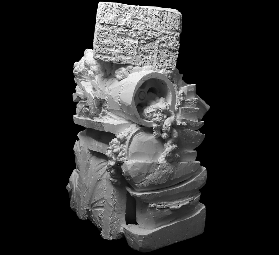 содержательно выбранные предметы — пакет с мусором, слив кухонной раковины, перчатка, губка и пена — оказываются связанны с процессом уборки. однако формально они образовывают неструктурированную, по определению хаотичную композицию, построенную на пульсации между фигуративностью и условностью.