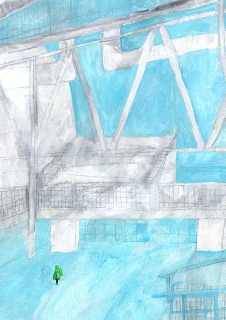 Ритм, пустота, поток — слова, которыми можно описать и музыку, и живопись. Паттерны ударов в мелодии и система клеток, окон, сеток и балок здания. Тихий, пустой такт в музыкальной композиции и пустые сидения в кинотеатре. Поток оглушающе громких надрывных нот и движение света. В проекте я обратила внимание на рифмы визуального и аудиального.