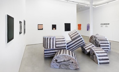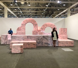 Техника (для представленных работ): - Модульные пенопластовые элементы с виниловым покрытием, нанесенным струйной печатью, с формами арок и блоков, имитирующих мраморные поверхности