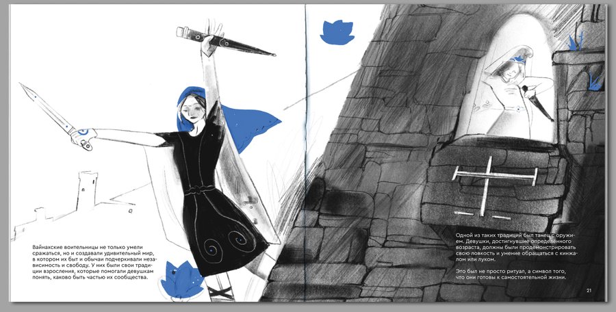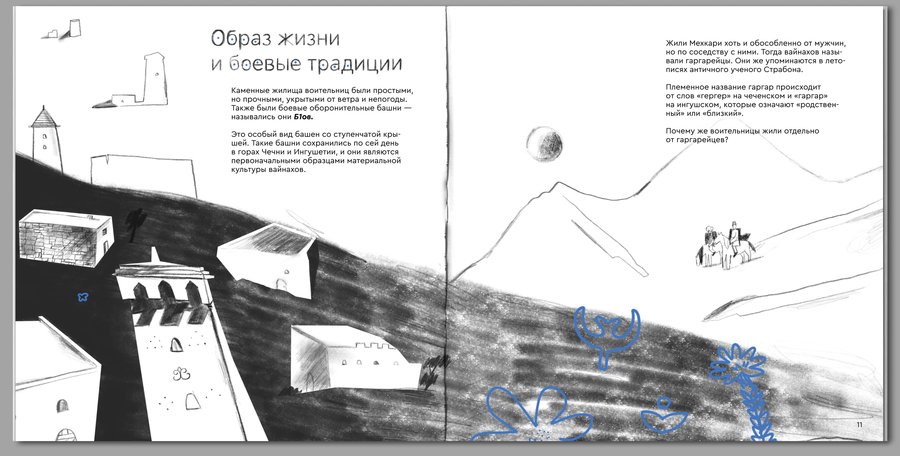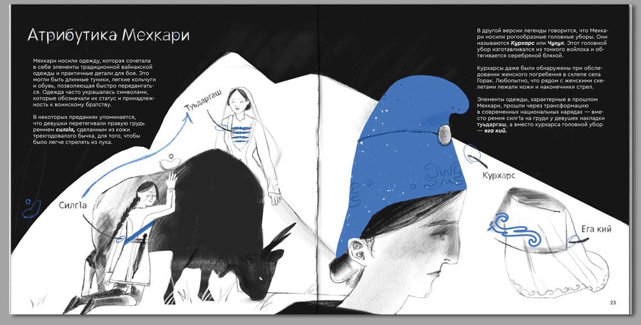 Иллюстрированная книга в жанре нон-фикшн повествует о легенде когда-то существовавших вайнахских воительниц Мехкари, символизирующих свободу, равенство и силу.
