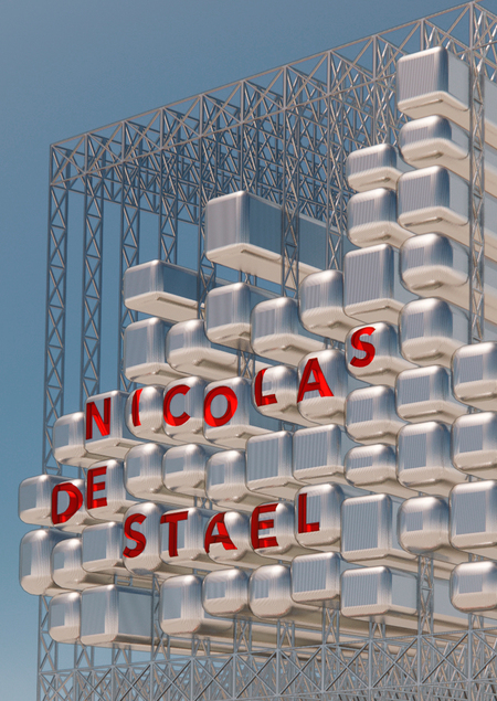 Временные фасады к выставке Николя де Сталя «Пленник чувств». Идея архитектурного фасада основана на слиянии двух произведений художника — пейзажа и картины с множеством прямоугольных форм, так, в данном проекте объединяются два главных периода творчества де Сталя —чистая абстракция и предметная.