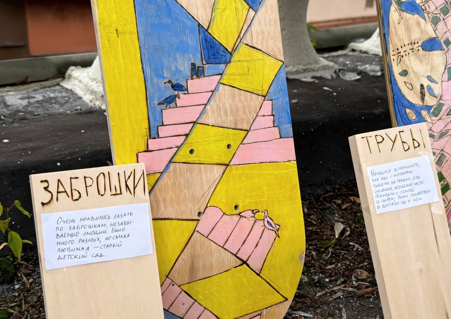 уличная выставка, на которой также можно написать собственные ассоциации, связанные с подростковым возрастом, а они потом станут основой для новых скейтов