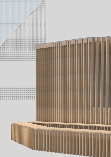 Формообразование связано с постройками, окружающими площадь, в основном, отталкиваясь от стиля здания в центре площади, выполненного в направлении модернизм.