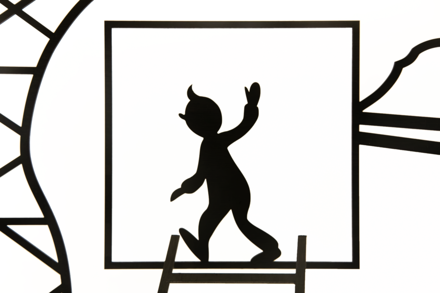 Лаконичность и простота форм отсылают незаконченной части серии — «Тинтин и Альфа-Арт».
