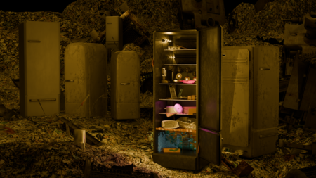 Металлический ржавый корпус холодильника — метафора «клеточного» образа жизни пациентов, их скованности мыслей и обреченности сознания