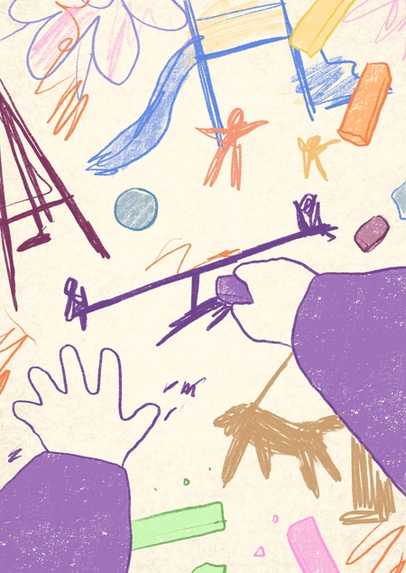 Анимационный этюд, включающий в себя предметную анимацию и документальную, в центре которой стоит детская площадка.