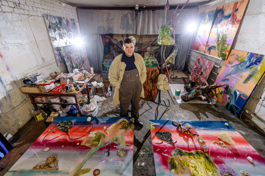 Думаю, что я начинал с традиции полуабстрактного и абстрактного экспрессионизма. В процессе пришло понимание, что если в абстракции заменить пятна на фигуративные образы, это станет более интенсивным и энергичным изображением, более насыщенной, агрессивной, более сумасшедшей страницей. Бессмысленность абстракции нужно наполнить какими-то рандомными движениями — с этой мыслью я до сих пор живу и стараюсь выдерживать баланс фигуративности. При этом, если спросить меня, что есть мое творчество, я скажу, что это абстракция! Это значит, что нет смысловой связи с этими образами, есть только связь образная, надсмысловая, на уровне эстетического кода. Это своего рода чувственное взаимодействие — как мазки на абстрактном полотне.