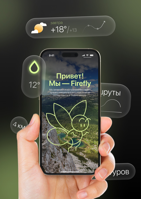 Firefly — это приложение для походов, где пользователи могут самостоятельно выбирать маршруты для своего пути. Заводи новые знакомства, исследуй новые места вместе с нами!