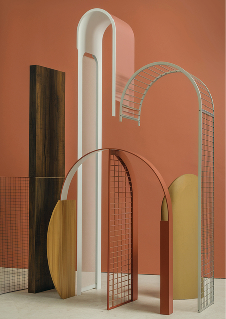 2 Minimalistic posters for the Architect company, which creates kits for creating models of buildings or mechanisms made of wood, plastic and metal that help to study architecture and engineering sciences. Colors: white, shades of dark coral, beige
