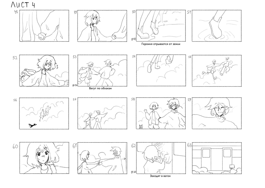 Реальный мир серый, однотонный. История начинается в метро, полном людей. Мир сна наполнен красками, зеленью. Во сне герои способны ходить по облакам. На облаках есть станция, там юноша сажает девушку в поезд, отправляя ее обратно в реальность.